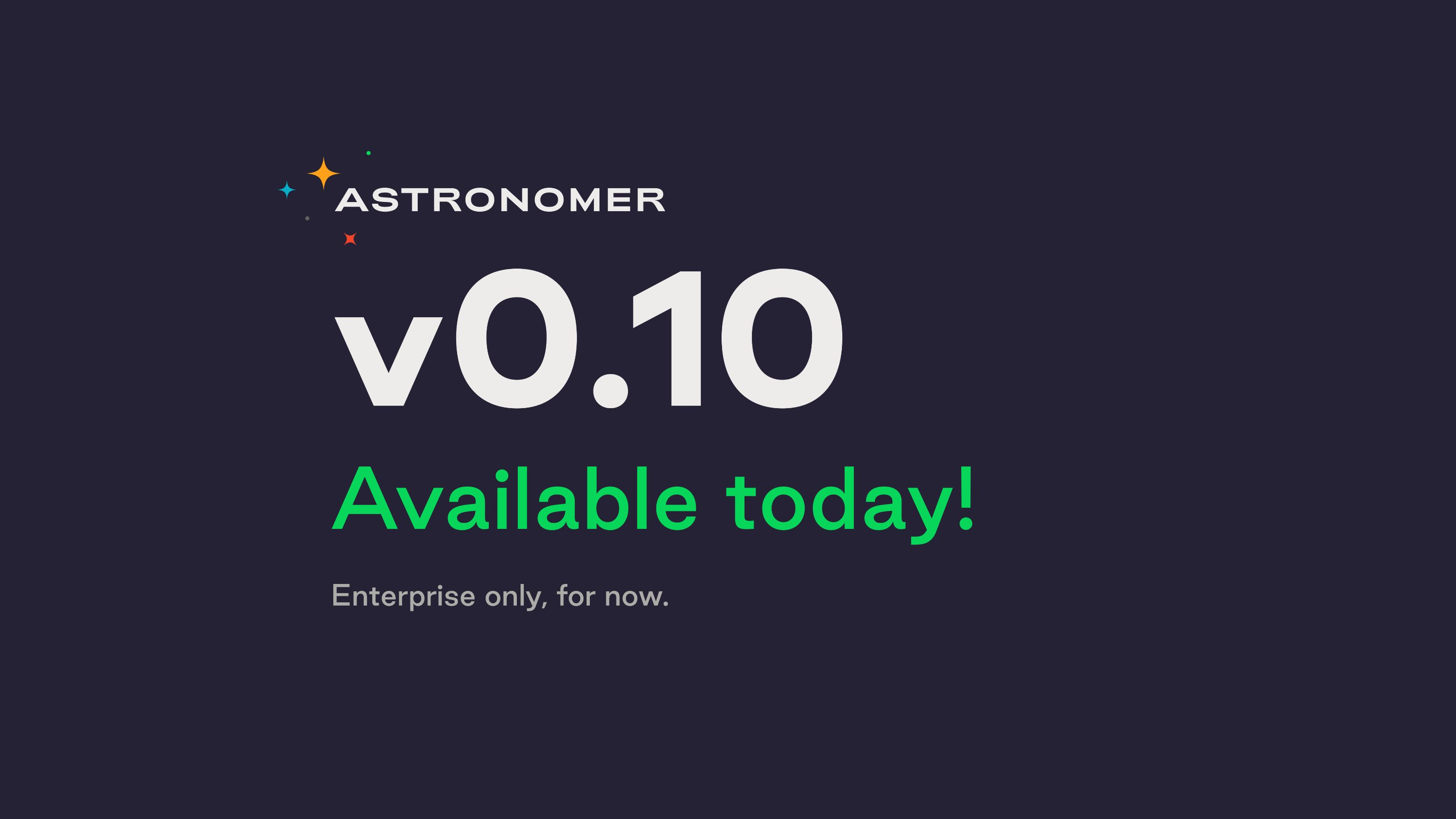 Last week, we released v0.10 of Astronomer to enterprise customers. Astronomer Cloud (our SaaS service) will be upgraded to v0.10 in the coming weeks.