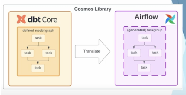 Figure 3: The Cosmos library translates a dbt model into an Airflow DAG. Image source.
