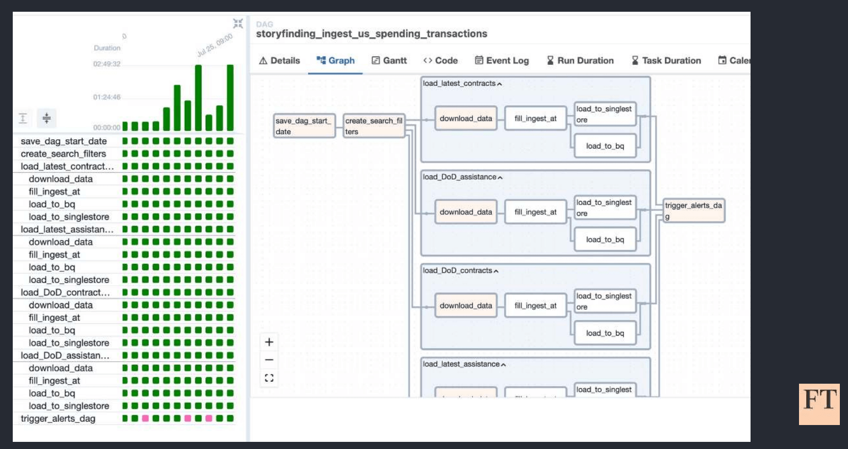 Figure 1: The FT Storyfinding team builds Airflow-orchestrated AI pipelines that turn messy public data into structured, searchable insights journalists use to uncover and report stories faster. Image source.