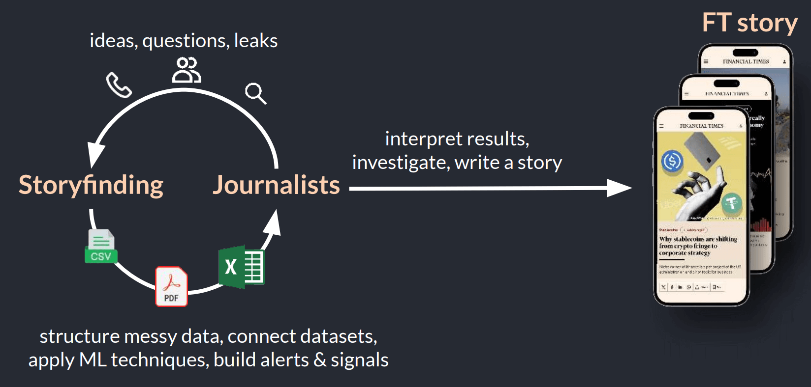 The Financial Times employs more than 700 journalists worldwide, producing reporting that increasingly depends on large, complex datasets. In 2025 alone, the US government published over 300,000 datasets spanning PDFs, tables, and free-form text. To make this information usable, the FT created the Storyfinding team, a group of engineers working directly with journalists to turn messy, unstructured data stored in a variety of modalities into actionable insights.