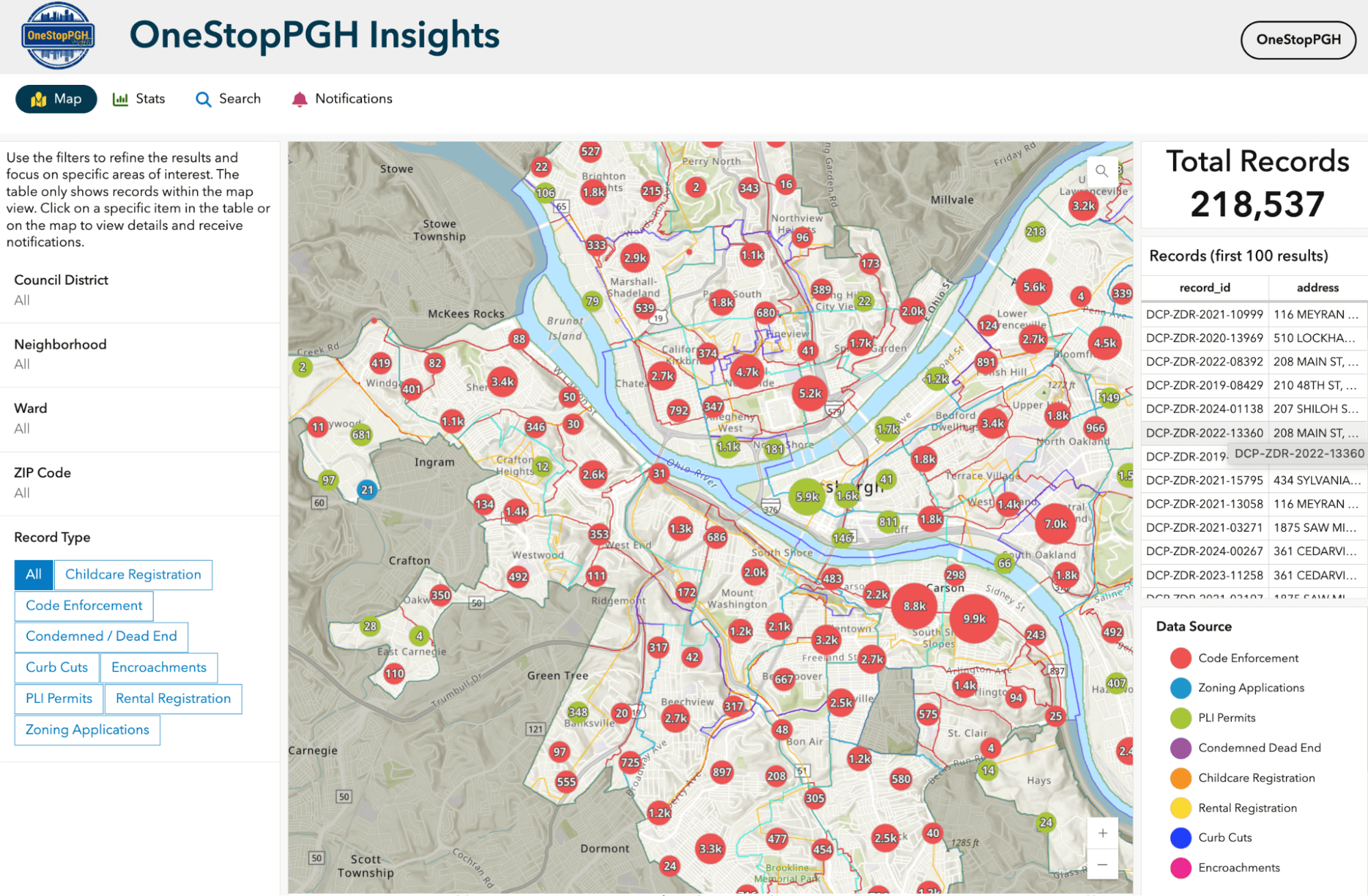 Figure 2: City of Pittsburgh OneStopPGH Insights tool. Image sourced from the City of Pittsburgh and Astronomer case study.