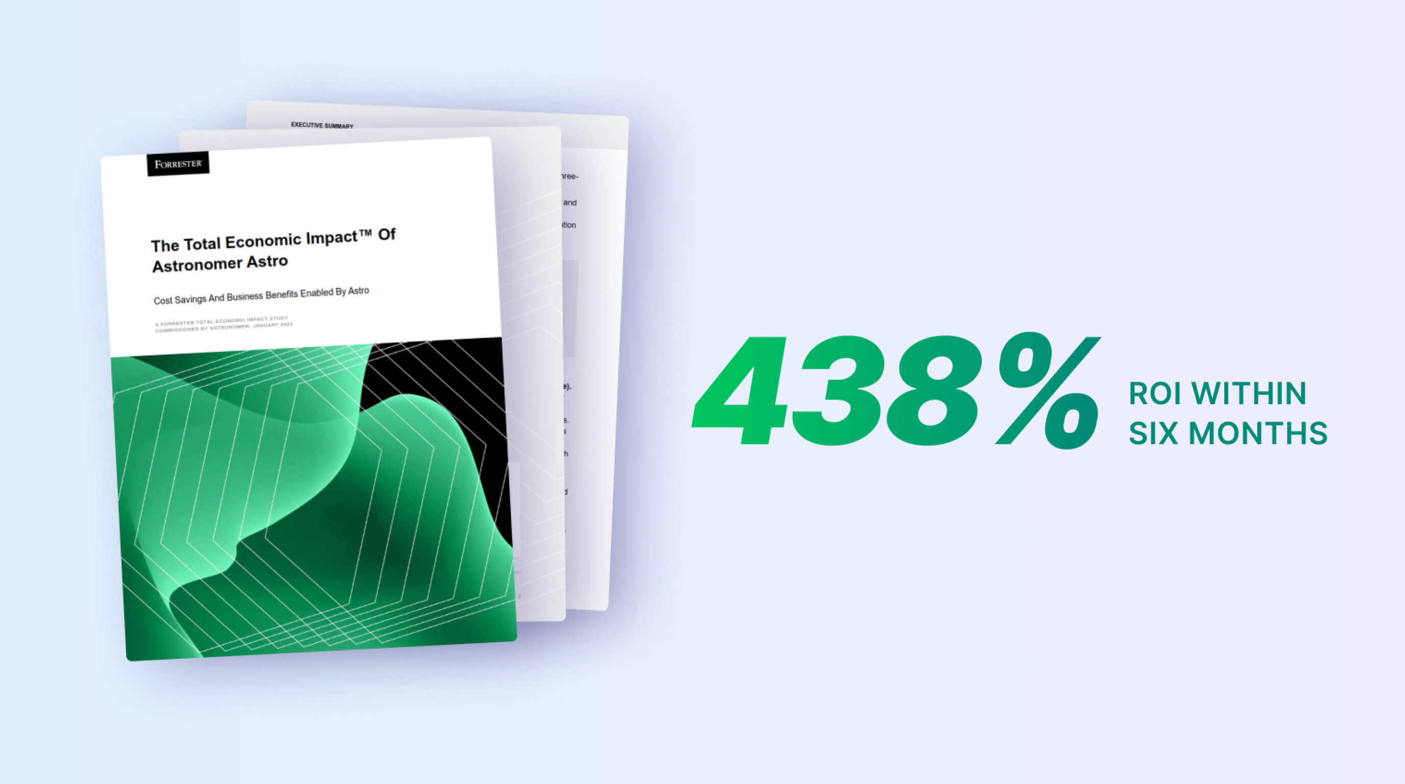 With technology options abound, relying solely on anecdotes isn't enough to guide your organization toward the right technology investment. You need concrete data to ensure that your tech stack delivers a substantial ROI. That's why we commissioned Forrester Consulting to conduct a Total Economic Impact™ (TEI) study to provide a comprehensive analysis of Astro's impact on enterprises.