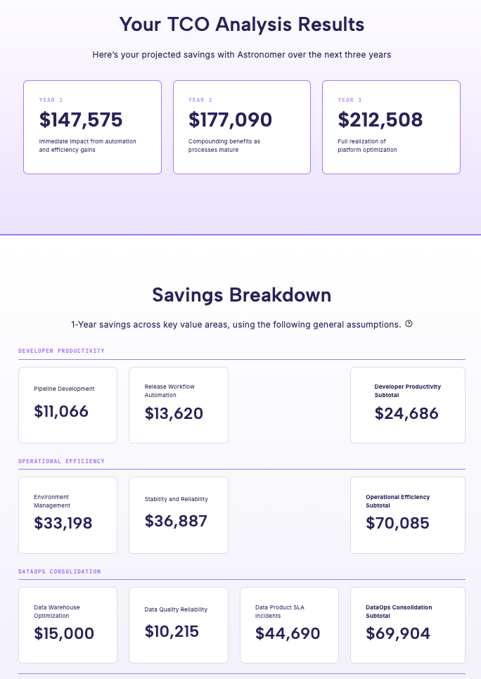 One challenge data teams face is how to justify investment in Astro to the business. That’s why we built the Astro TCO Calculator.