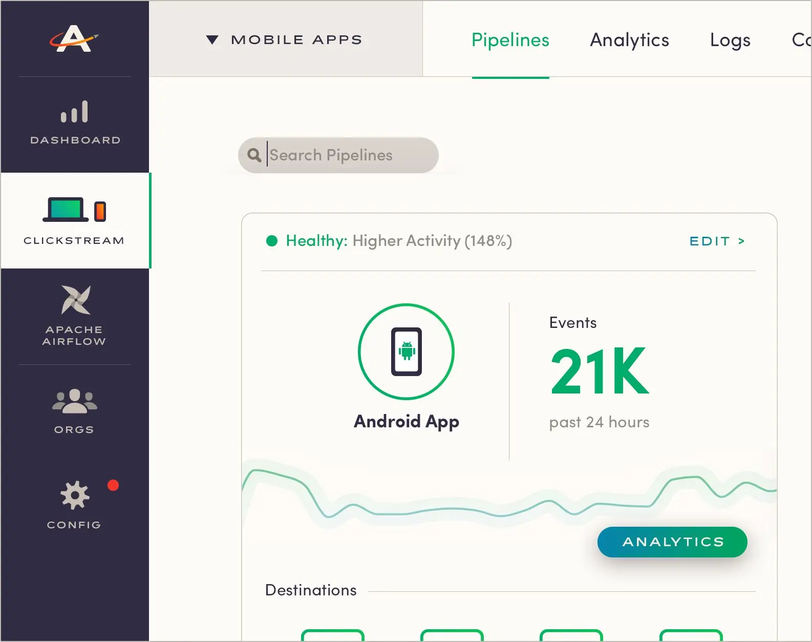 Step one was making user behavioral analytics easier. But that quickly evolved when our clients started needing access to more types of data and “forced” us to extend our clickstream infrastructure. We realized then that a component of our product—Apache Airflow®, which we used in a variety of ways—could solve that problem out of the box. Airflow is a workflow management system to schedule, deploy and monitor dependency-based data pipes. In other words, it could do a whole lot more than what we were using it for.