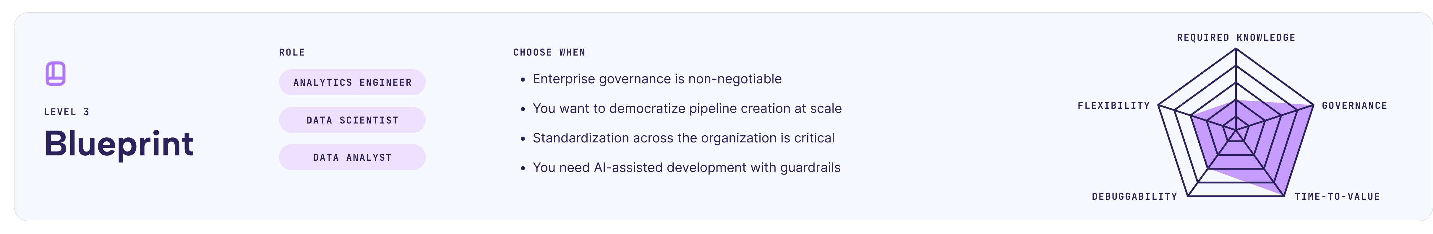 This resolves a tension I felt for years: either gate-keep pipeline creation through a small engineering team (slow, frustrating) or let everyone write Python (risky, inconsistent). Blueprint offers a third path.