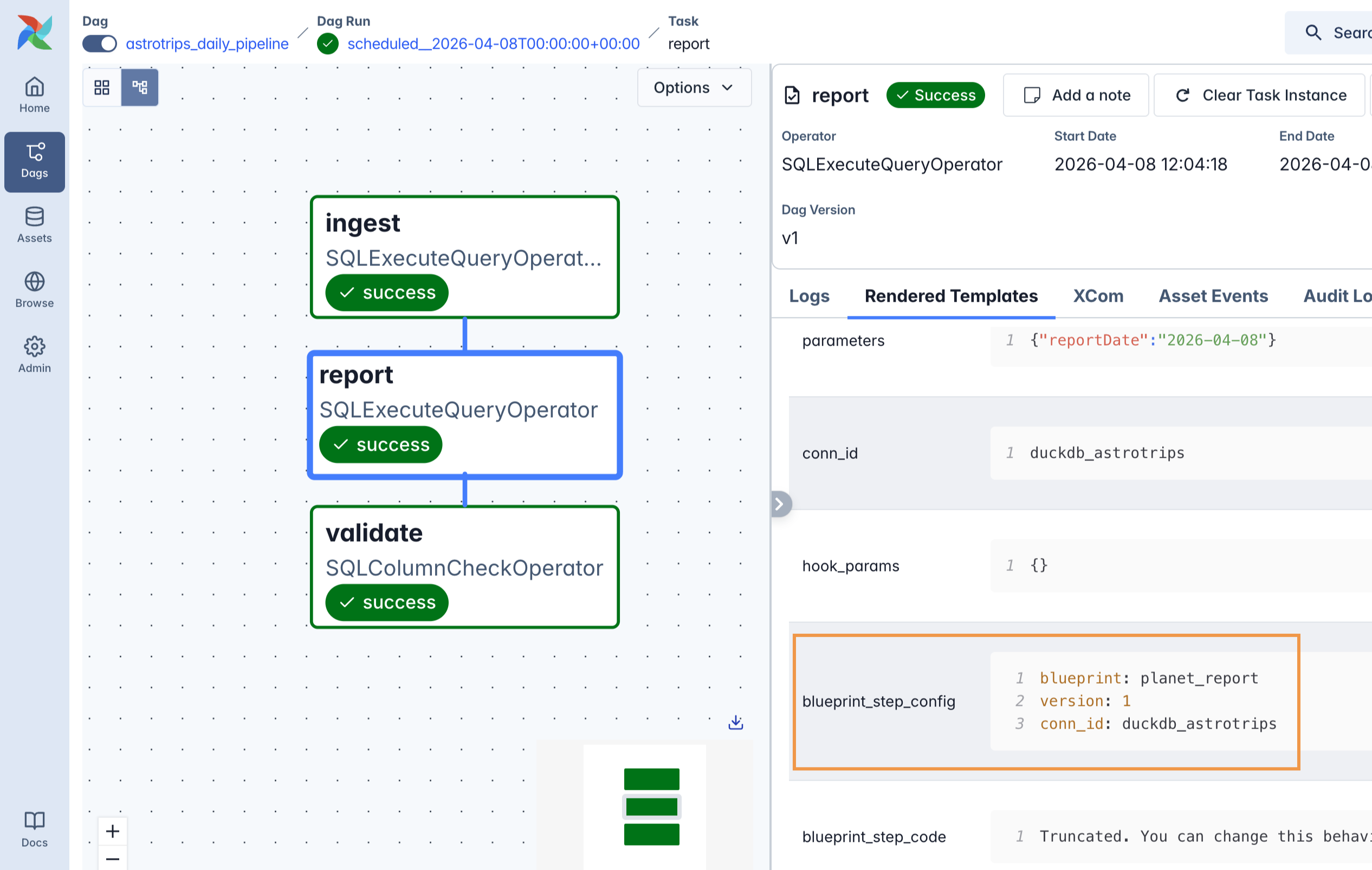 Here are two blueprints for the AstroTrips daily pipeline: one to ingest booking data, and one to generate a planet revenue report.