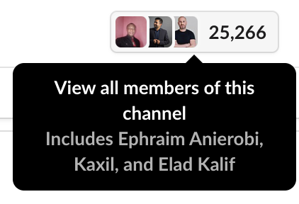 The largest of Airflow’s populations is on Slack, however, where there are (as of this writing) just over 25,000 registered users. This is one metric we currently do not automatically retrieve; when we use it in content or materials, it has been gathered from the Slack user interface at a particular moment. (For key content, we update it regularly.)