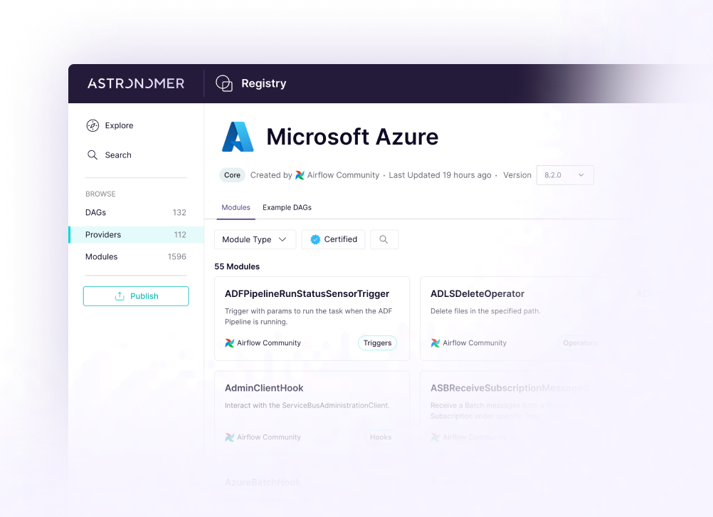 Easily discover and access Azure-compatible operators, hooks, and modules to modernize your data stack.
