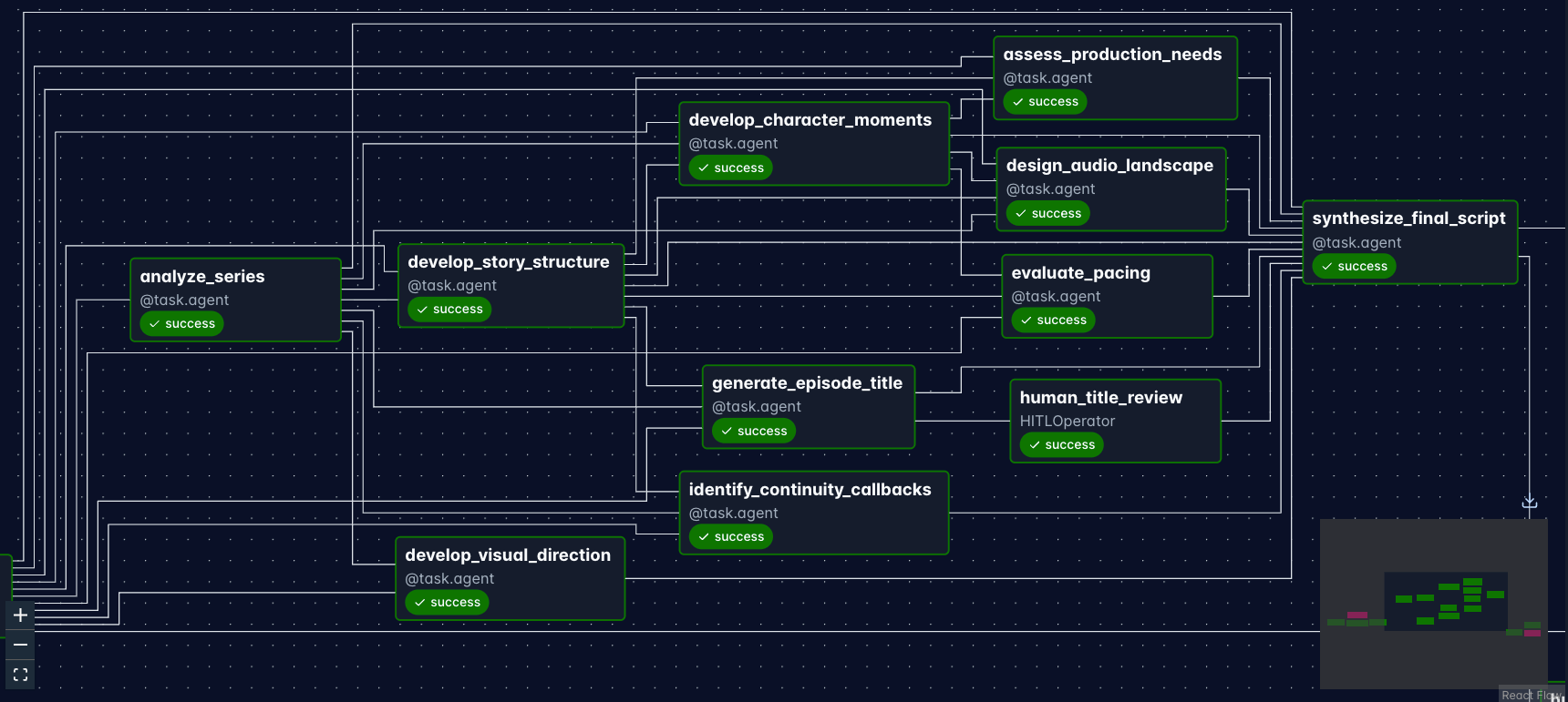For my test, I decided I did not want to wait until season 3 drops for a new Severance episode, so I created a pipeline that orchestrates agents to write one for me and my outie.