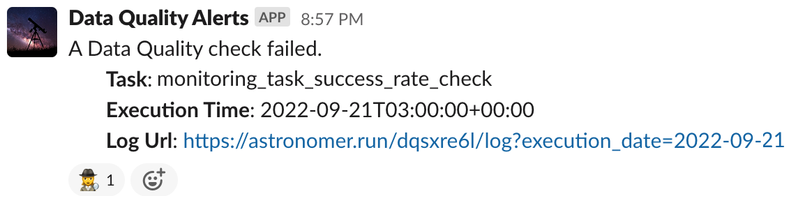 Figure 6: Slack messages alert the data team and pipeline owners when tests detect problems with data quality.