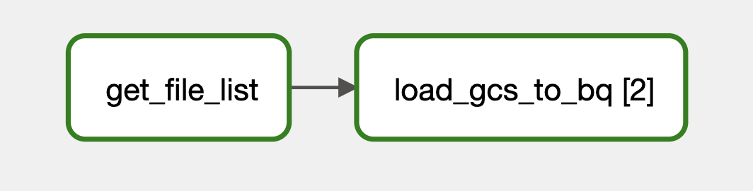 For a simple case – where there’s just two files in our bucket storage – we end up with two mapped instances of our dynamic task load_gcs_to_bq in the Airflow UI Graph view.