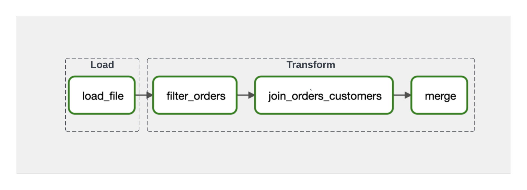 Figure 1: A simple ELT DAG in which we use task dependencies to ensure that upstream tasks have finished preparing data that downstream tasks require.