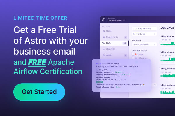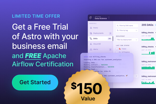 The Astronomer Certification for DAG Authoring exam assesses your knowledge of designing and creating reliable data pipelines following best practices.