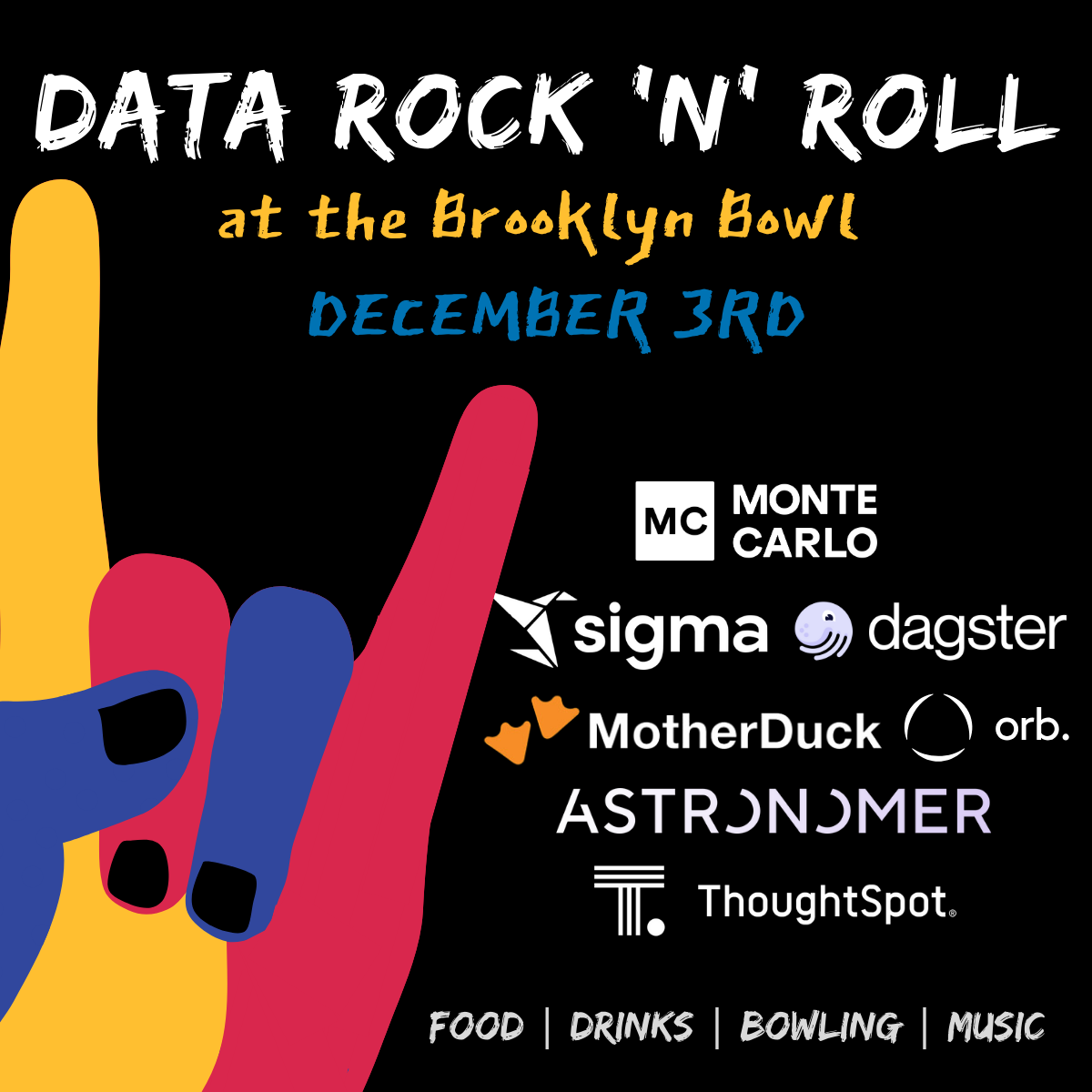 Join us for Data Rock and Roll at the Brooklyn Bowl in Las Vegas! The go-to happy hour for AWS re:Invent attendees blends the thrill of bowling with engaging discussions on data and cloud innovation. Attendees will enjoy a fun-filled atmosphere where they can network with fellow AWS enthusiasts, industry leaders, and innovators while competing in friendly bowling matches.