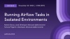 This webinar provides an extensive overview of the different options for running Airflow tasks in isolated environments - a Kubernetes pod or Python virtual environment that’s separate from your Airflow environment. The ability to run tasks in an isolated environment helps avoid common data pipeline problems, like dependency conflicts and resource management, and gives DAG authors control over how and where their tasks run. It’s useful, for example, if you need to run a task requiring Python packages that conflict with core Airflow.