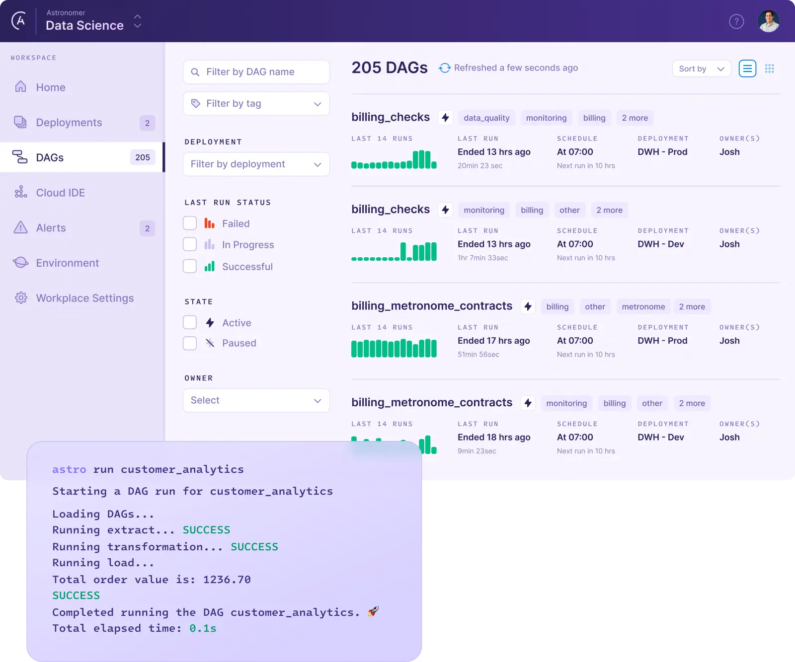 Let Astronomer develop or migrate your workflows to Astro’s ultra-optimized Airflow environment, delivering world-class ETL capabilities with our industry-leading expertise — all at no cost