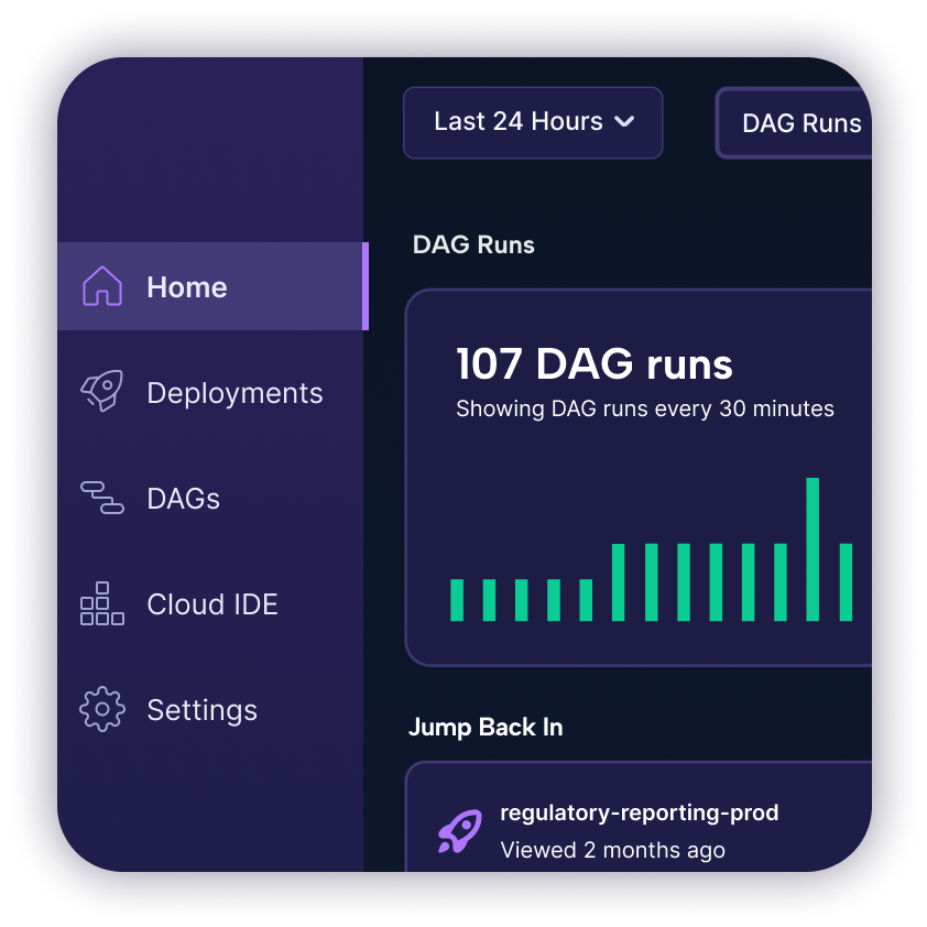 Cut infrastructure management time by 75% with Astro’s enterprise-grade reliability and high availability. Free your team to create business value while ensuring consistent data delivery.